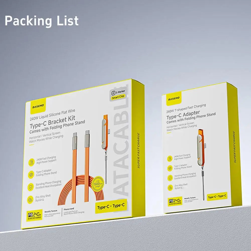 240W USB-C Cable with Phone Stand – Ultra-Fast Charging & 480Mbps Data Transfer