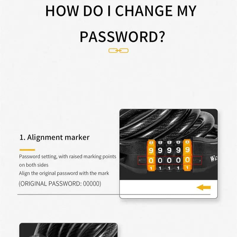 Bike Cable Lock Anti-Theft Password Security for MTB, Road, Scooter & Motorcycle