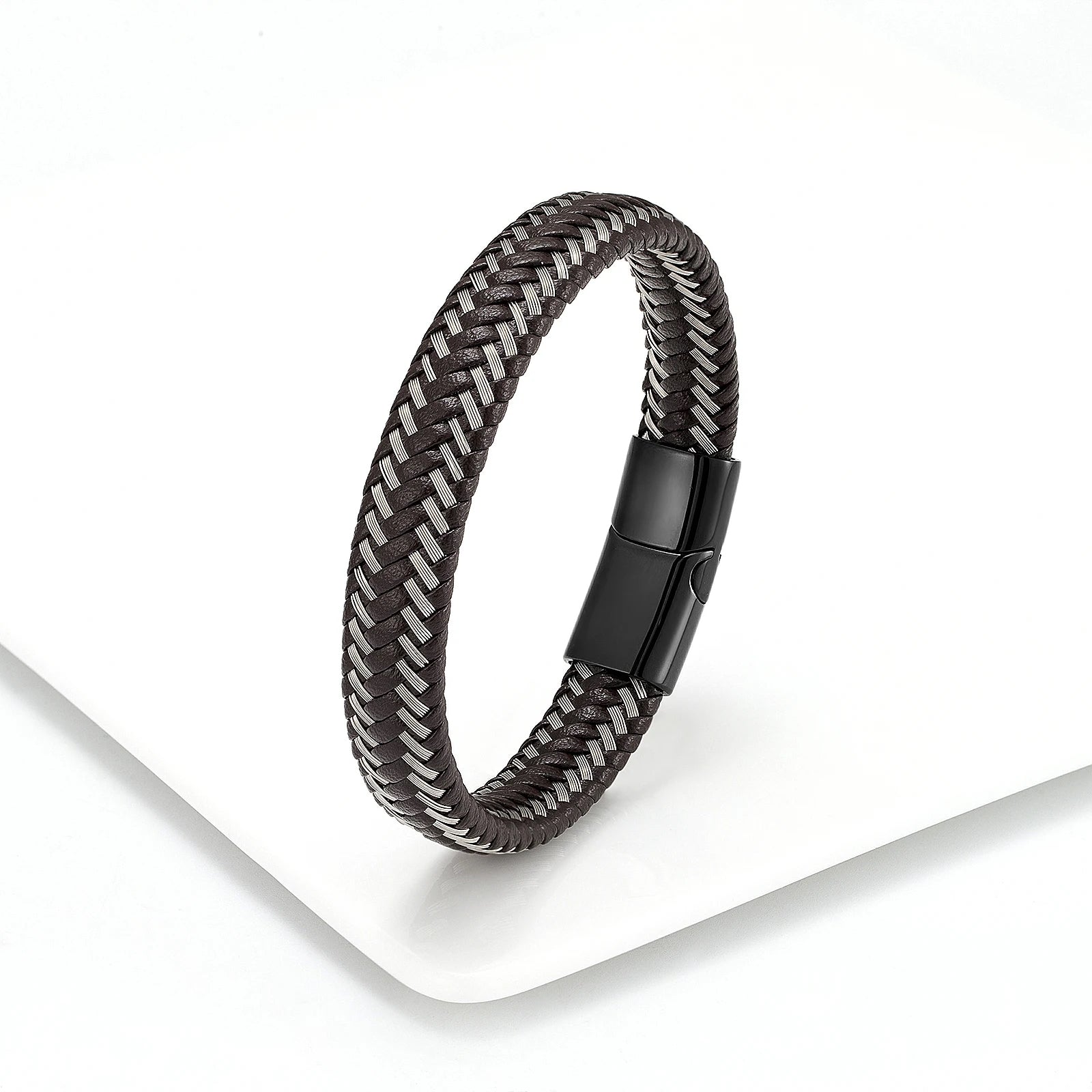 Stainless Steel Braided Leather Bracelet Elegant Style
