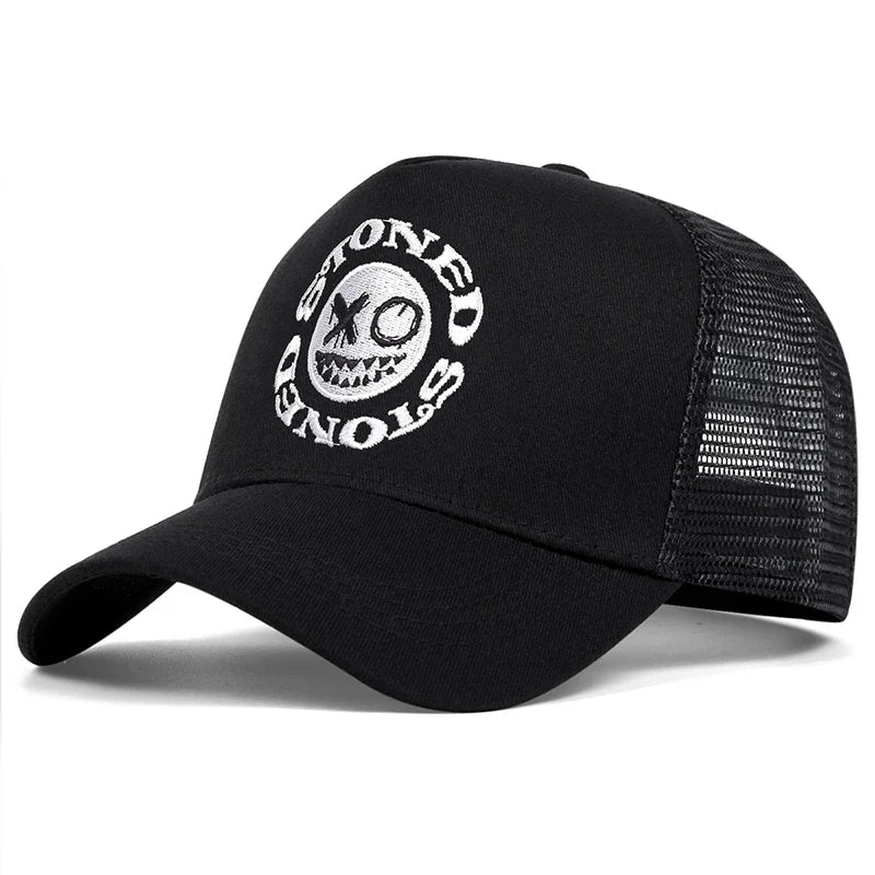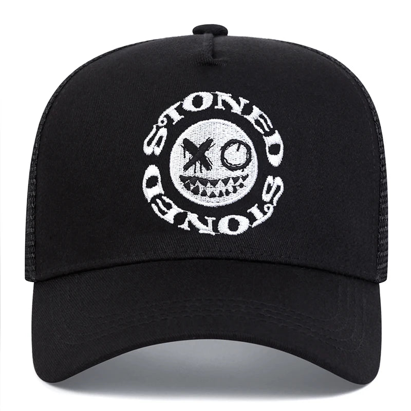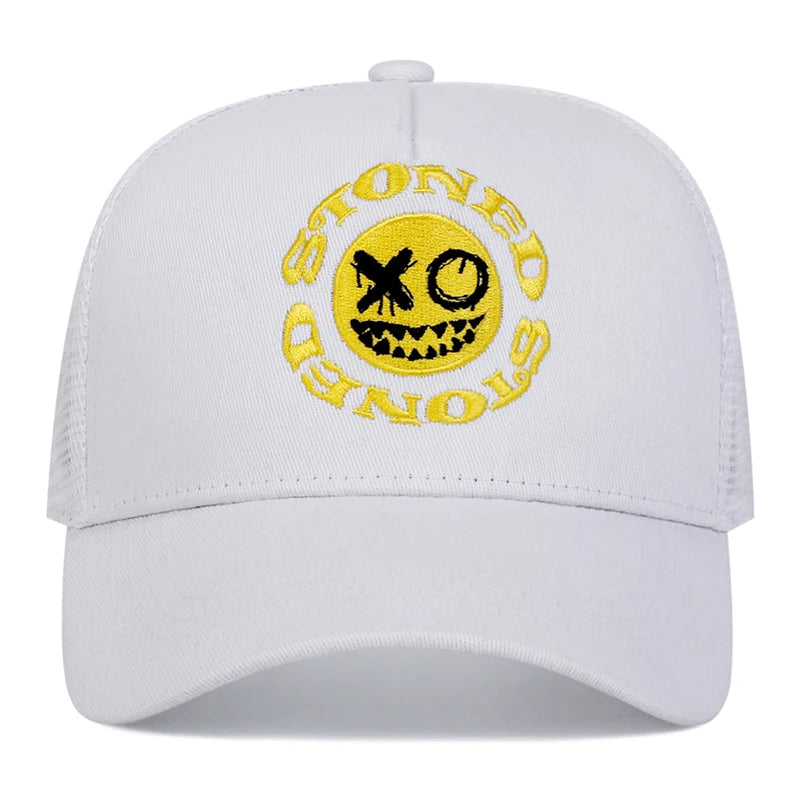 STONED Smiley Face Baseball Cap - Mesh Trucker Hat Unisex