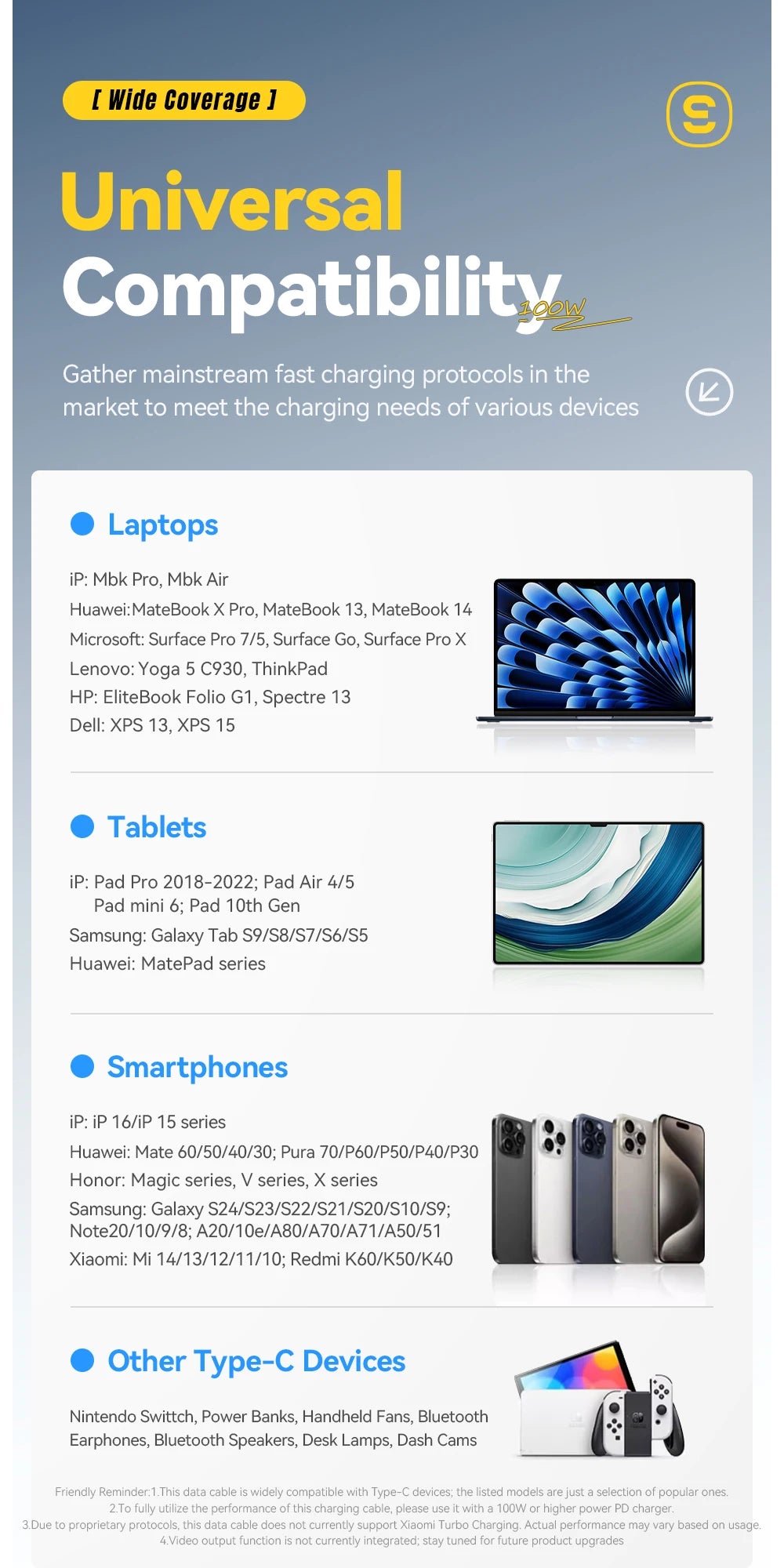 - ✓ Gaming: Nintendo Switch, Steam Deck