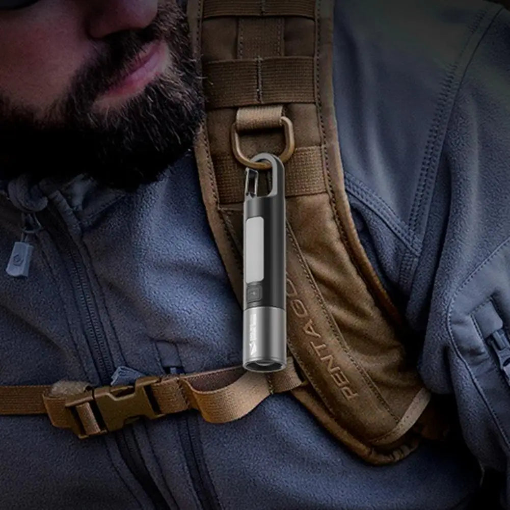 Light up your outdoor adventures with our waterproof LED flashlight, the perfect companion for unlimited exploration. With a compact and portable design, this flashlight offers intense light thanks to its powerful COB LED, which provides a focused and adjustable beam so that nothing escapes sight. Its innovative buckle closure system allows you to keep your hands free, while conquering the darkness with total confidence. Ideal for night walks, camping or unforeseen situations, this flashlight is ready to accompany you every step of the way. The light you need, always at your fingertips!